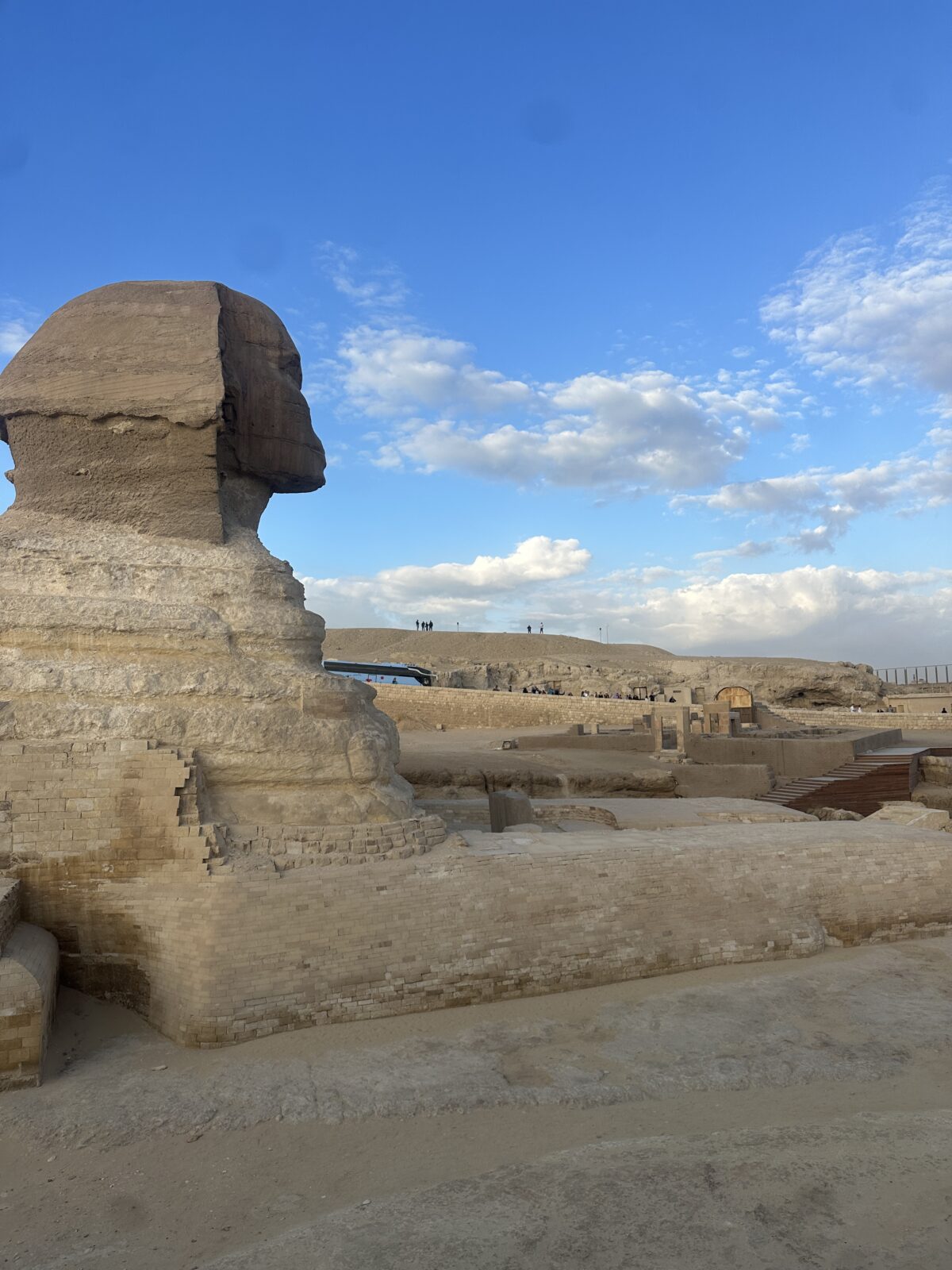 The sphinx faces the New Kingdom Sphinx Temple, which was used primarily for funeral rites. Most of it has gone now and what remains is a series of chambers similar to the body parts bit. We walked round the corner and up the hill and all of a sudden were right next to the shpinx.